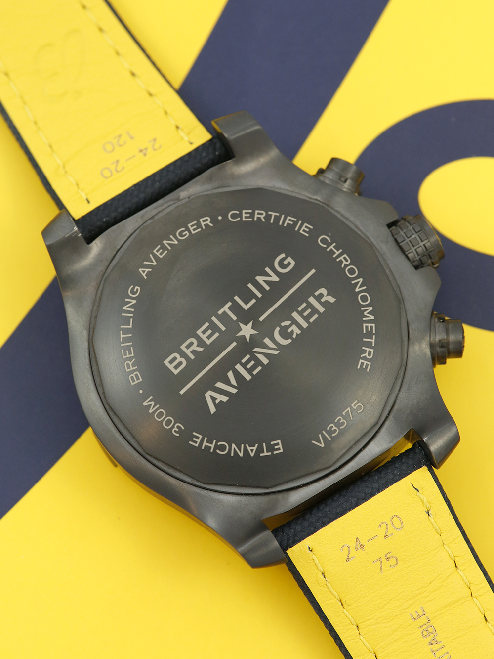 Bold, extremely robust and shock resistant, the Super Avenger Chronograph 48 Night Mission model reference V13375101C1X1 makes a big “here I am” statement with its strong but lightweight case.