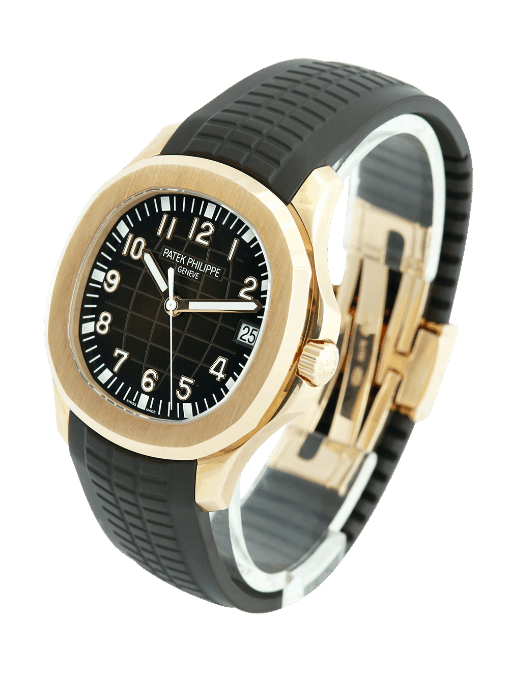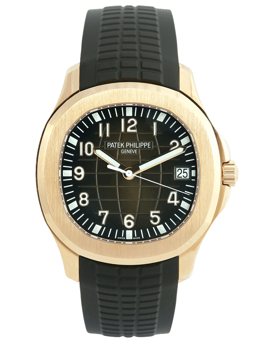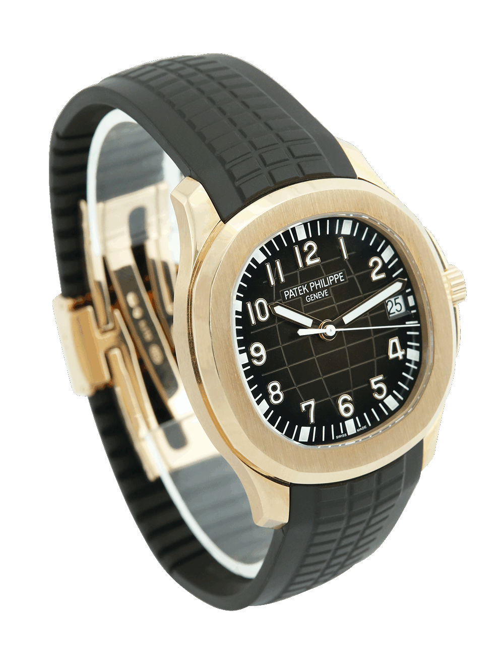 This version the reference 5167R-001 is still produced today thanks to its classic design. Set in a polished 40.8mm rose gold case with a brushed bezel, the dial still features the embossed rounded texture, which became less pronounced than on the 90’s models. It is a clean brown colour with large block hour markers and hands with luminous filling. The dial also features gold applied applied Arabic numerals and a date window at 3 o’clock, which are protected by a flat sapphire crystal glass. The watch is powered by the Patek automatic calibre 324 S C movement, which is visible through an exhibition caseback. Waterproof up to 120M thanks to its screw-down crown the watch comes fitted on a chocolate brown composite strap featuring the same pattern as the dial with a rose gold Patek triple-folding clasp.