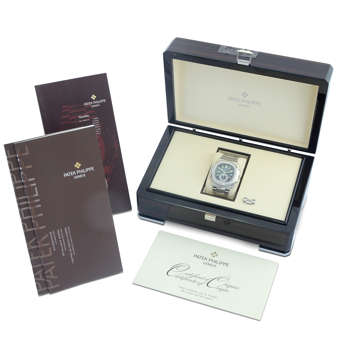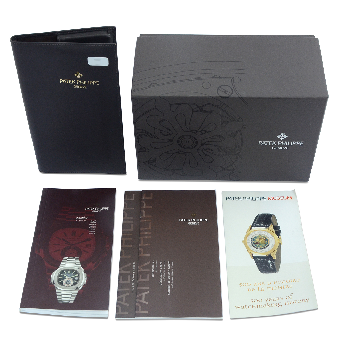 As shown in the detailed images this Nautilus is supplied with the original inner and outer Patek Philippe boxes, a Patek Philippe inner box dust cover, the Patek Philippe leather booklet holder, Patek Philippe Nautilus manual, The Collector’s Library booklet, Distributors booklet, Patek Philippe Museum Booklet, and the original Patek Philippe certificate dated June 2010 when first supplied new.