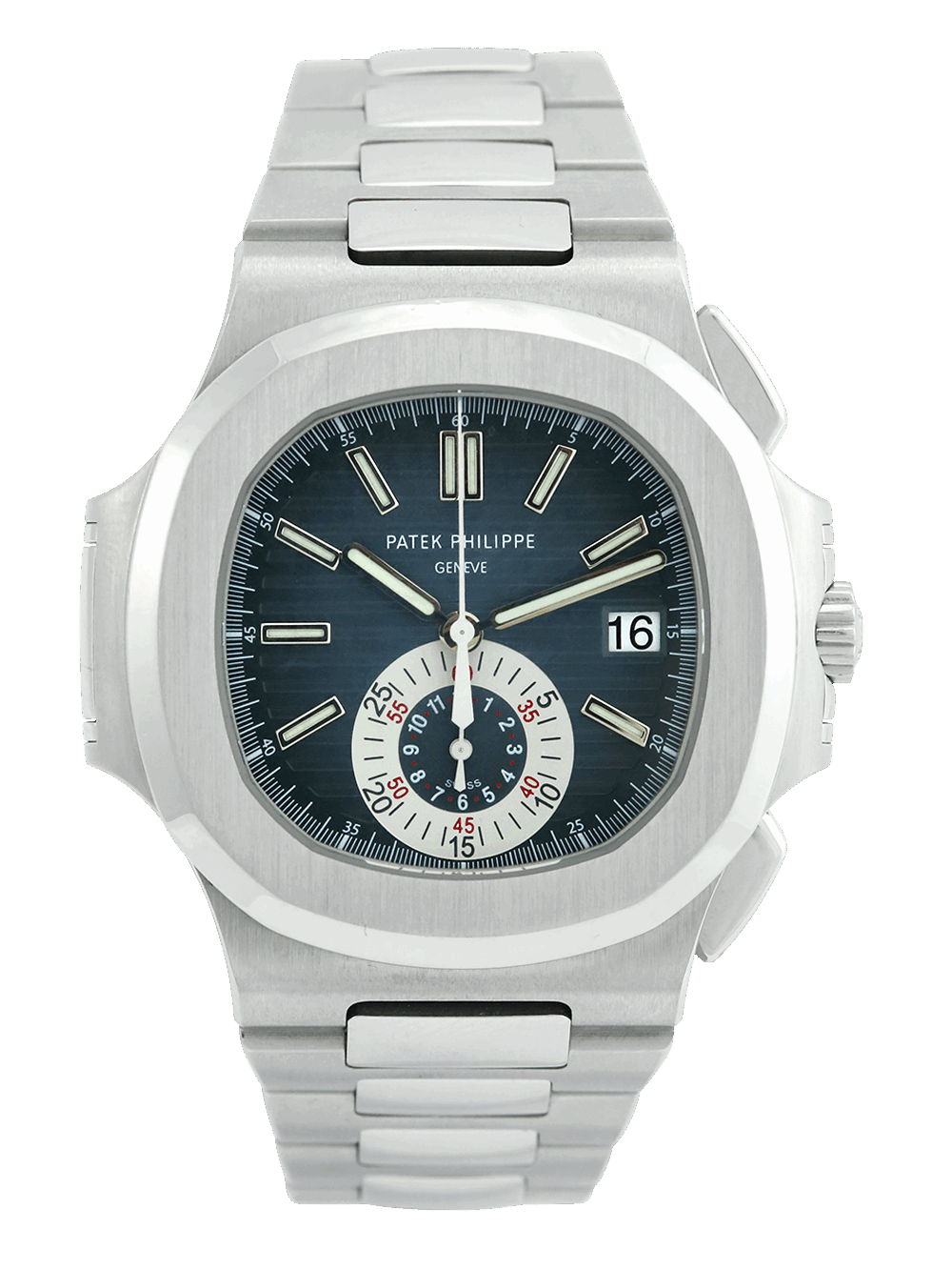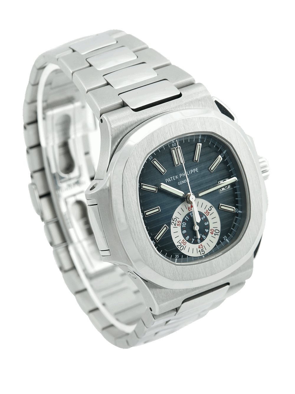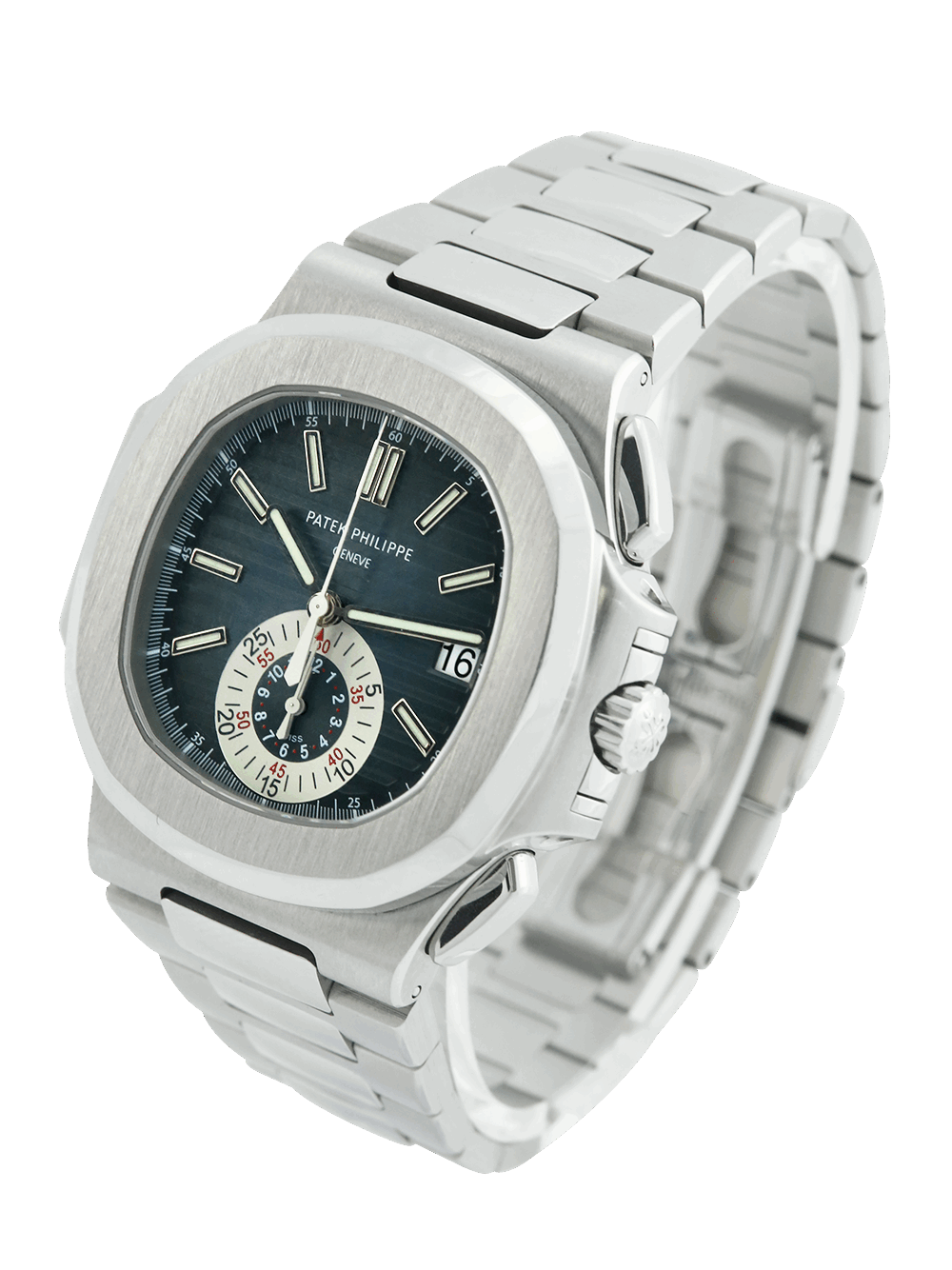 This reference the 5980/1A-001 was launched in 2006 as part of the 30th anniversary of the Nautilus and was the undisputed star of the show. It is set in the iconic shaped case but with a 40.5mm diameter and set in stainless steel, giving it a luxurious but practical feel on the wrist. The dial is an incredible blue/grey gradient colour in the classic Nautilus style with the horizontal embossed texture and luminous stick hour markers and hands both edged in white gold.
