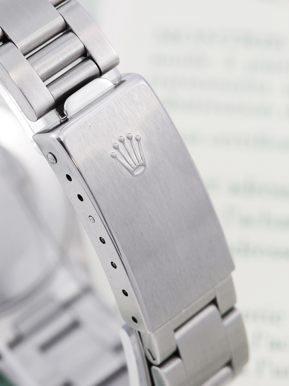 As mentioned as with all of our watches we strive to offer them for sale in a truly exceptional condition regardless of the costs involved. In this case this watch was sent away by us to the UK based Rolex service centre. This watch underwent full service to its movement as well as a meticulous and sympathetic refurbishment of the case and bracelet additional work completed as follows: replacement crown and tube, replacement glass, an additional extension link, replacement oscillating weight and replacement clasp, extension link the total cost of the work completed £984