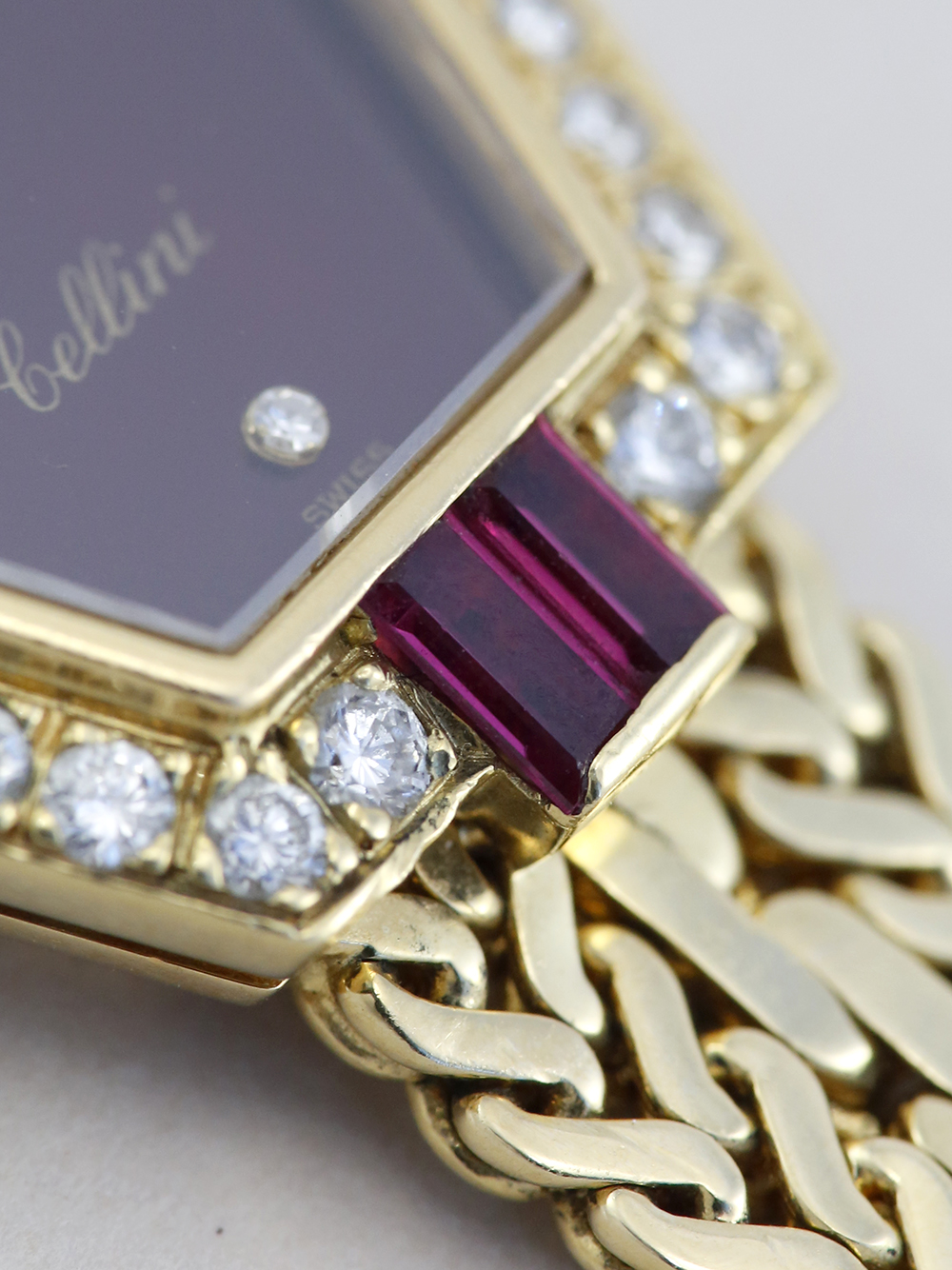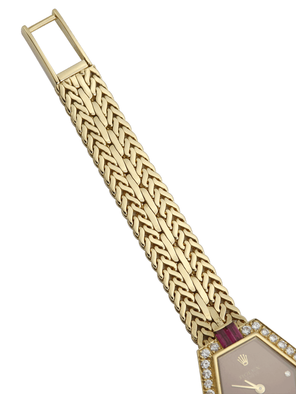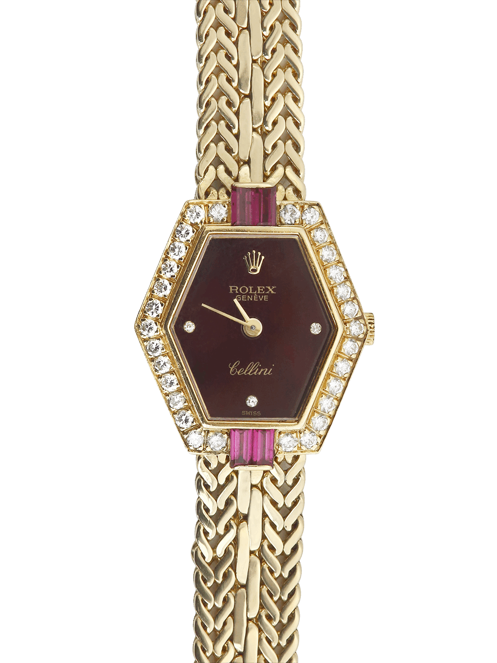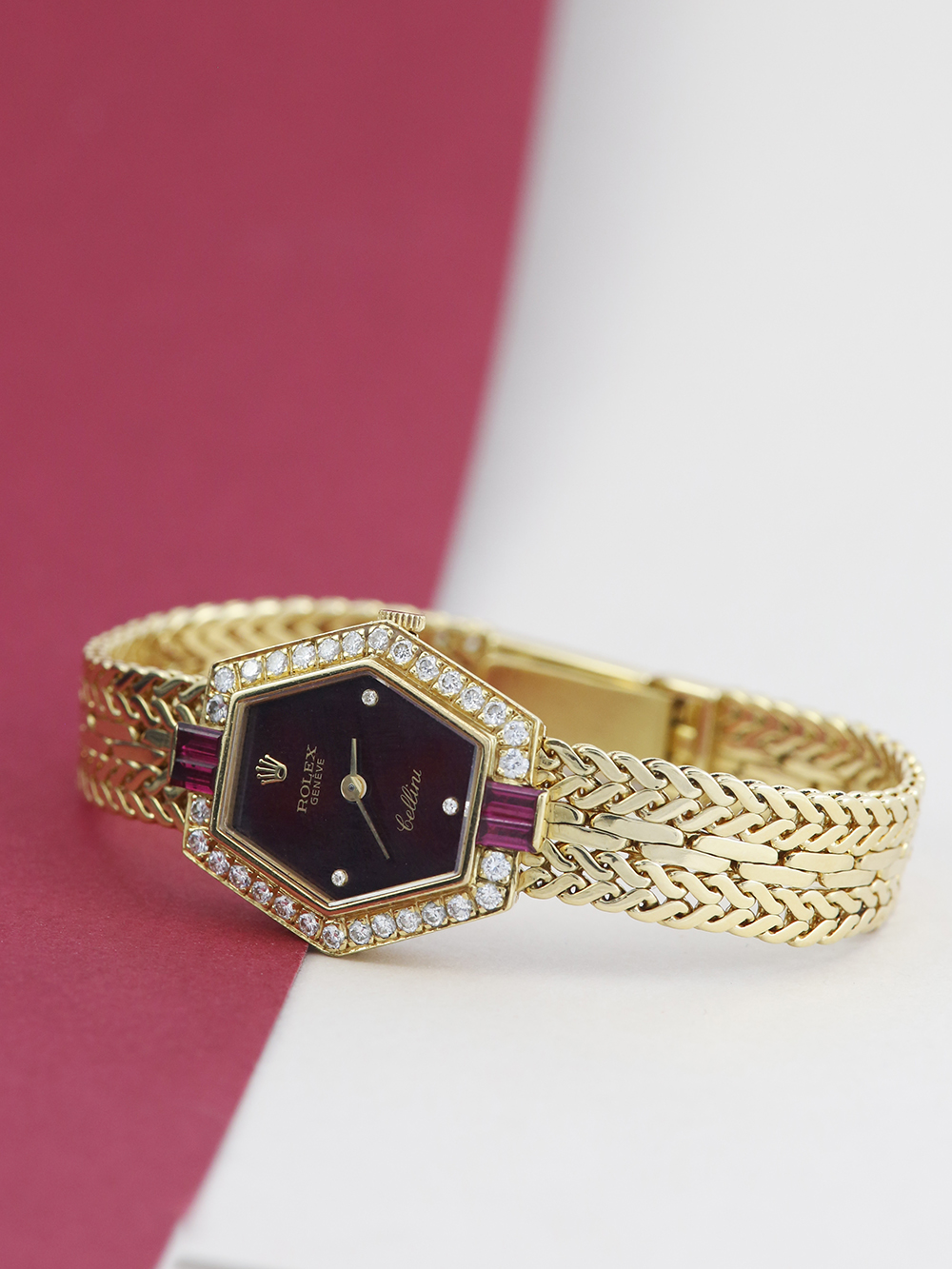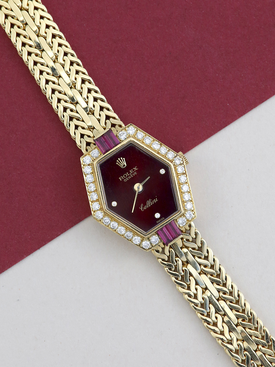 Rolex Cellini 2291 | 18ct Yellow gold | Factory Set Diamond and Ruby Bezel | Maroon Diamond Dot