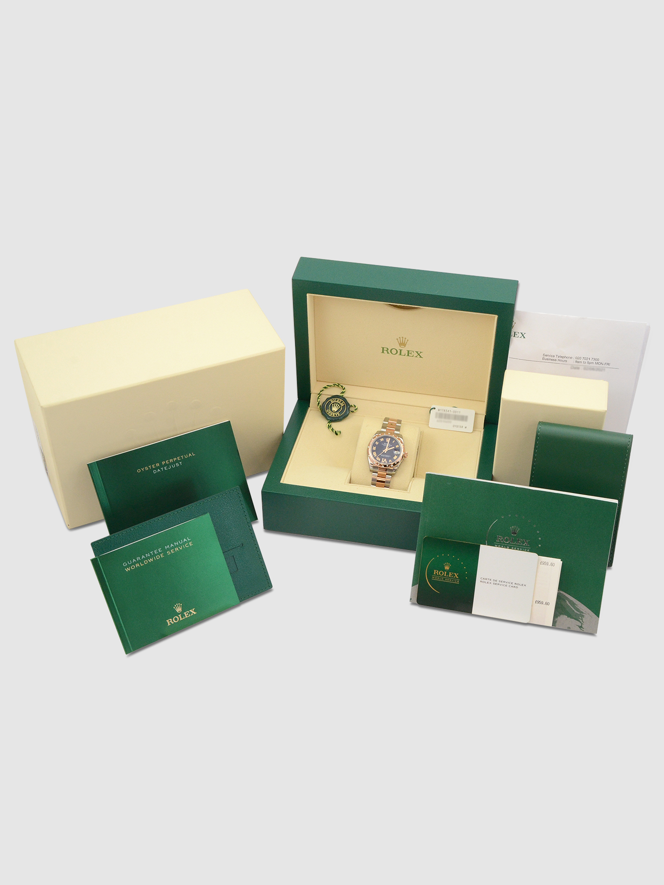 As with all of our watches which have had manufacture service work completed this watch includes the new style original Rolex service box, the new style original Rolex service pouch, an original Rolex service manual and the new passport style digital Rolex service warranty card dated June 2025 and the original service receipt (£959.60).