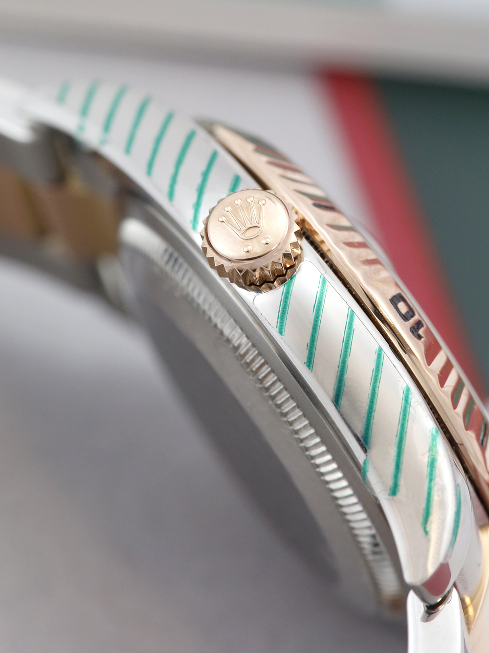 As with all of our watches we strive to offer them for sale in a truly exceptional condition regardless of the Rolex servicing costs involved. In this case, we sent the watch to the UK Rolex service centre where it underwent full service to its movement as well as a meticulous refurbishment of the case and bracelet, in addition a new crown and new glass were fitted. The work came to a total of £871 The service stickers remain in place and the watch is unworn since the service.
