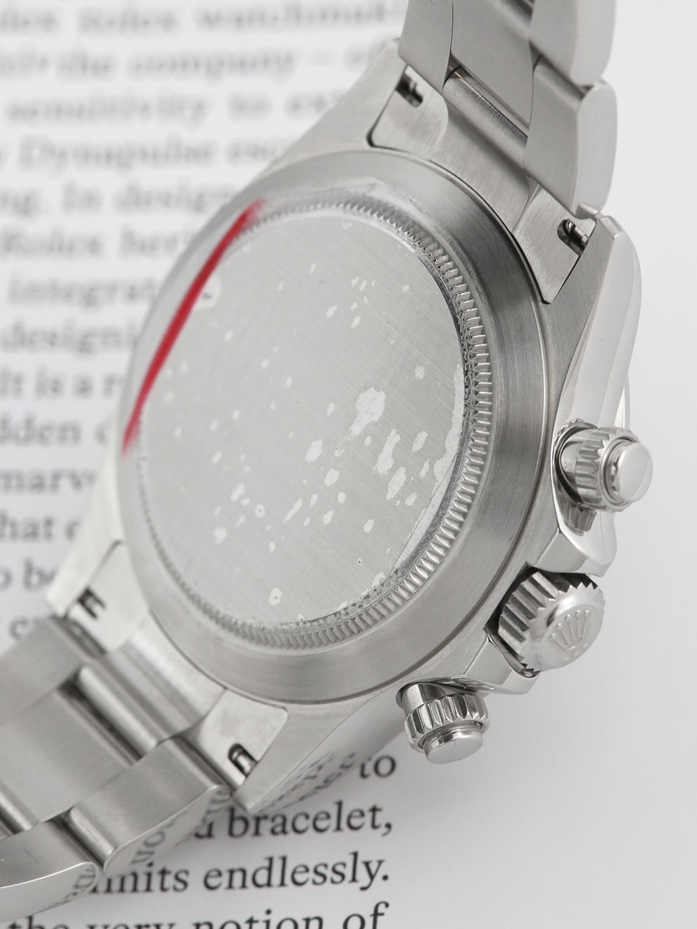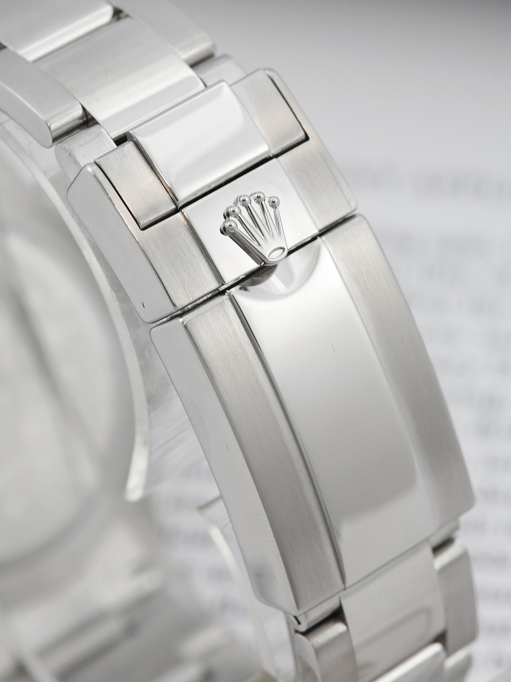 We will without exception present for sale our watches at the highest standard. This watch is offered for sale having been sent to the UK Rolex service centre where it underwent a full service to its movement as well as a meticulous refurbishment of the case and bracelet also a new glass, a new crown, one new pusher, counter hands and one link was fitted. The work came to a total of £1199.60 The watch is unworn since.