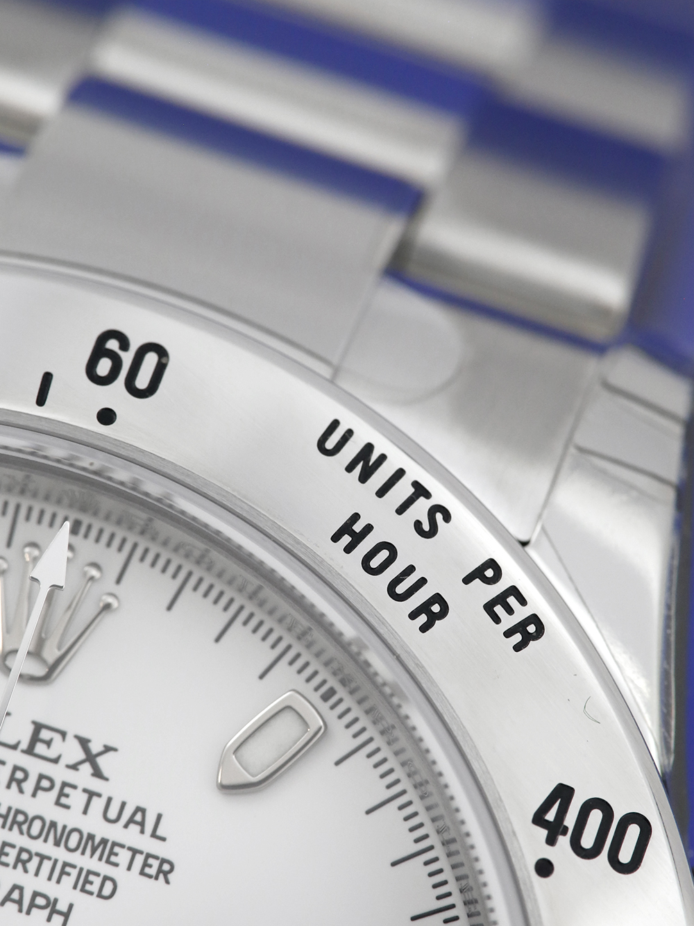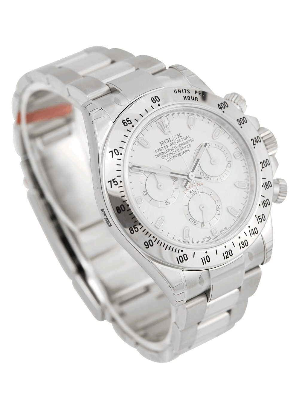 As mentioned above a unworn, untampered with all factory stickers intact 40mm case size stainless steel random serial superlative chronometer, calibre 4130, automatic movement Rolex Daytona model reference 116520 featuring a white baton ‘APH’ dial housing silver outlined white sub-dials surrounded by a stainless steel units per hour bezel on a full retail length stainless steel Rolex Oyster bracelet.