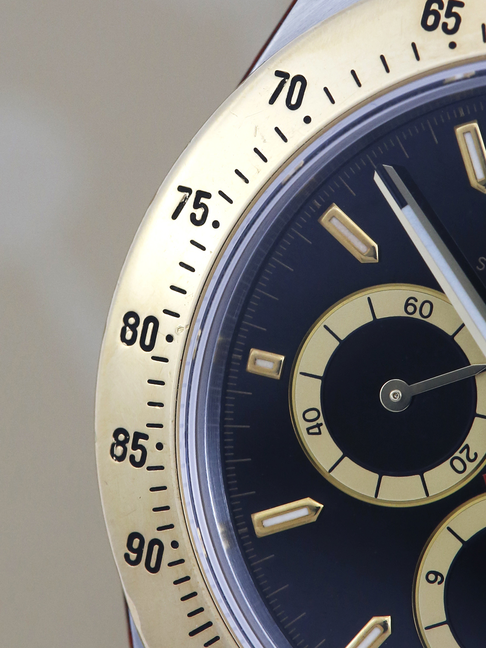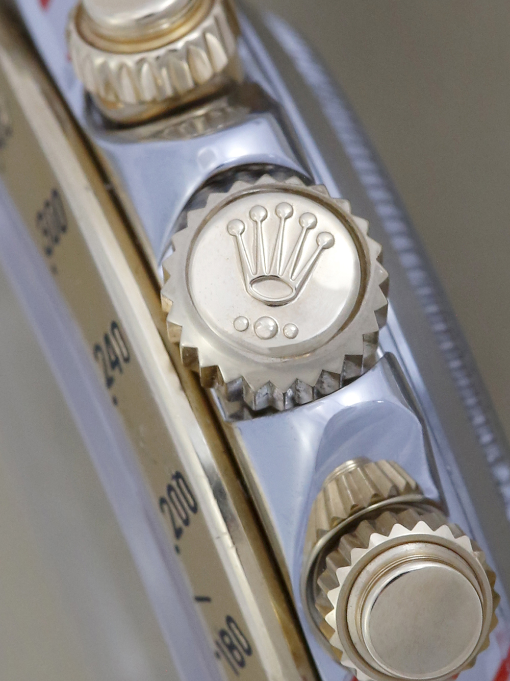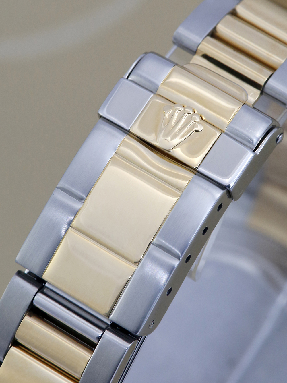 As with all of our watches we strive to offer them for sale in a truly exceptional condition regardless of the costs involved. In this case, we sent the watch to the UK Rolex service centre where it underwent full service to its movement as well as a meticulous refurbishment of the case and bracelet. In addition a new crown, crystal, hands and one pusher were fitted. The work came to a total of £1,429 The service stickers remain in place and the watch is unworn since the service.