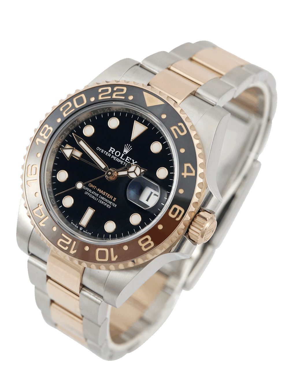 We are delighted to offer for sale this preowned in pristine condition a chronometer rated automatic movement Rolex GMT-Master II, model reference 126711CHNR. This stunning watch features a 40mm bimetal stainless steel and rose gold, housing a black dial with luminous rose gold outlined indexes. The dial is surrounded by a rotating rose gold bezel with a black & brown “Root Beer” ceramic 24 hour GMT bezel insert. Presented on a full retail length stainless steel and everose gold Rolex Oyster bracelet with satin-finished outer links and polished finish centre links, completed by a folding Oysterclasp.