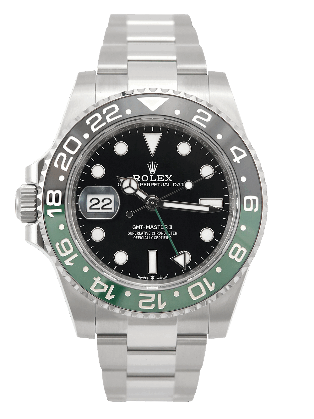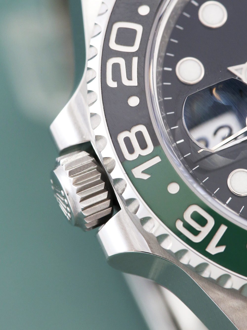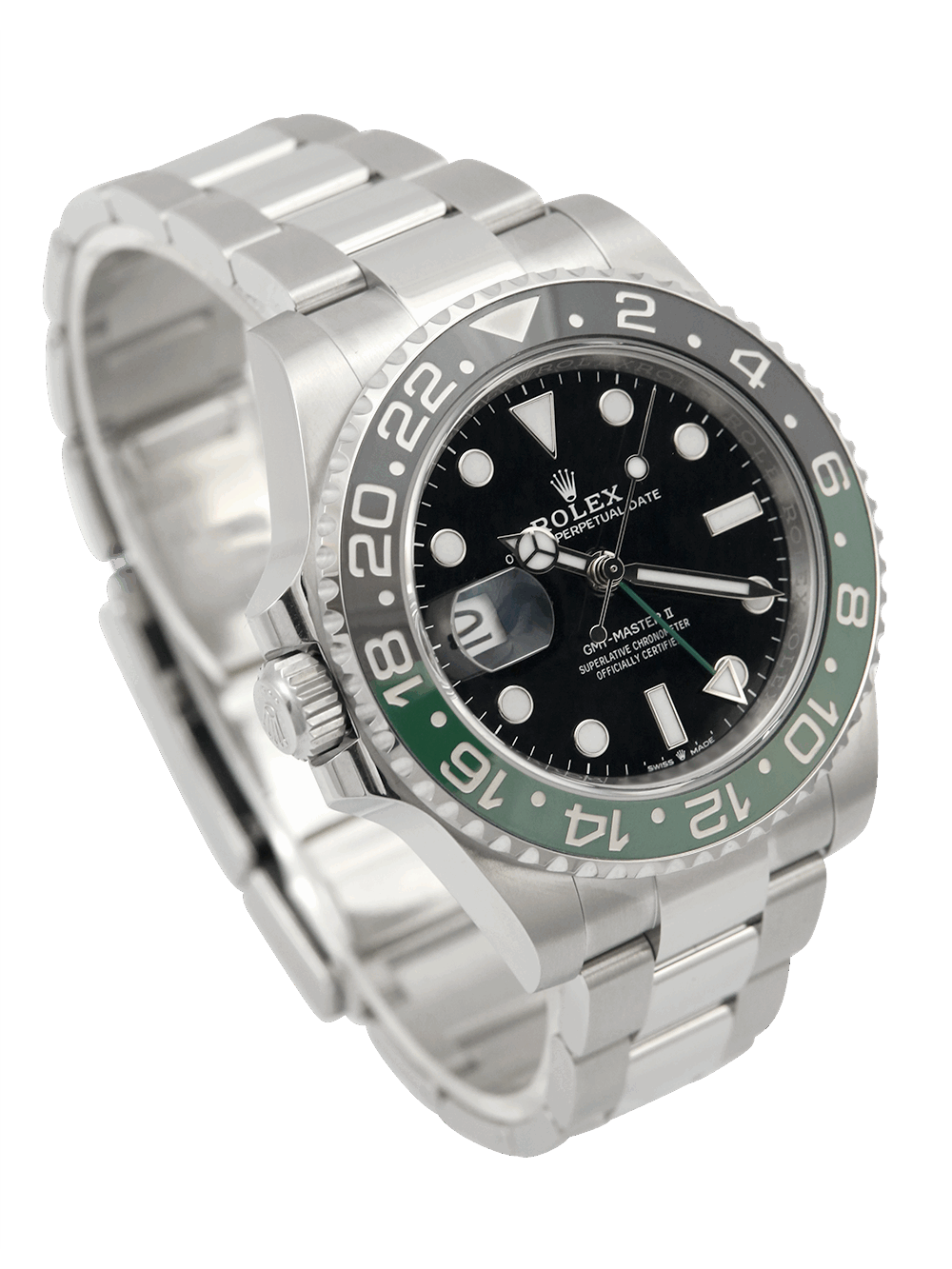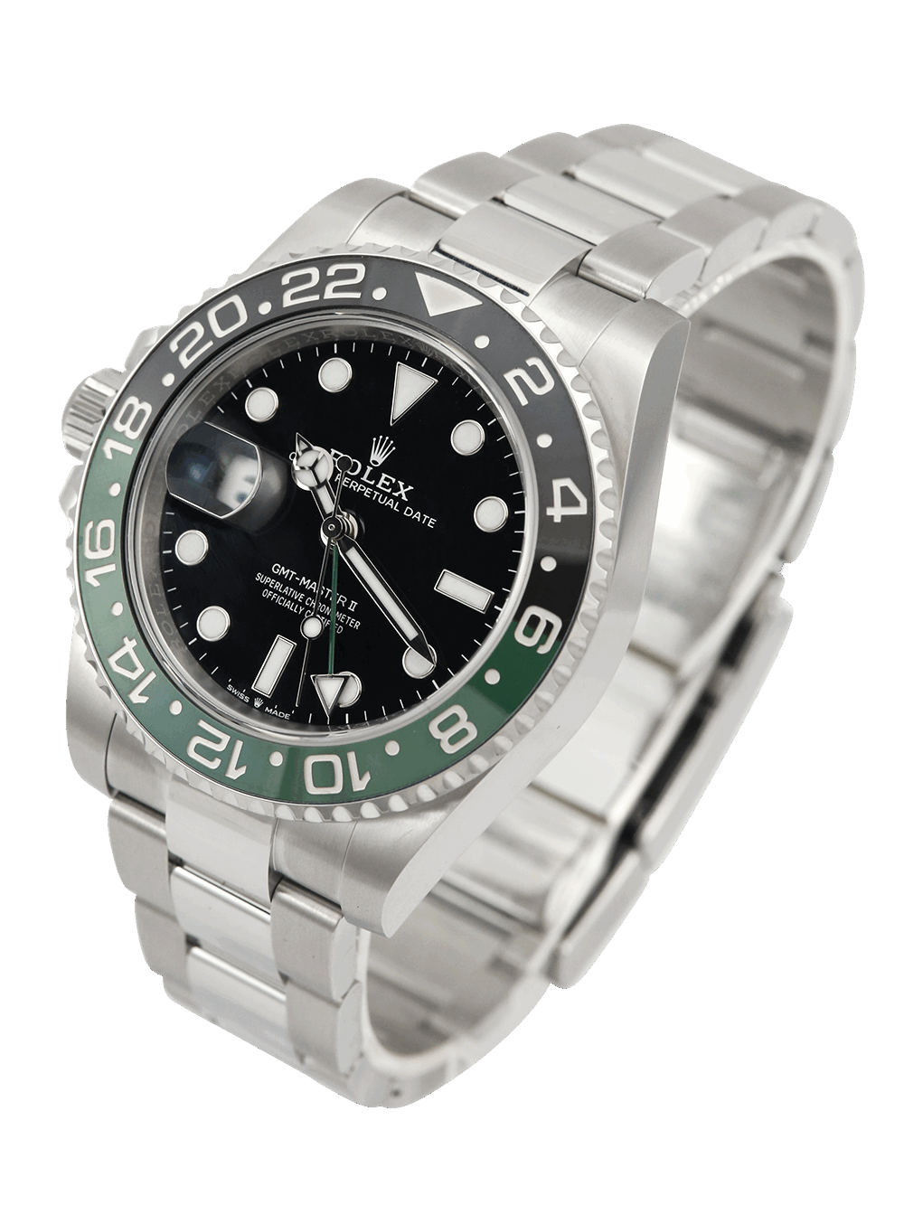 We are delighted to offer for sale this unworn, unsized and brand new 40mm case size Oystersteel superlative chronometer, calibre 3285, automatic movement Rolex GMT Master II model reference 126720VTNR featuring a black baton dial surrounded by a black and green ceramic 24-hour ‘Sprite’ bezel on a full retail length Oystersteel Rolex Oyster bracelet with brushed finished outer links and polished finish centre links.