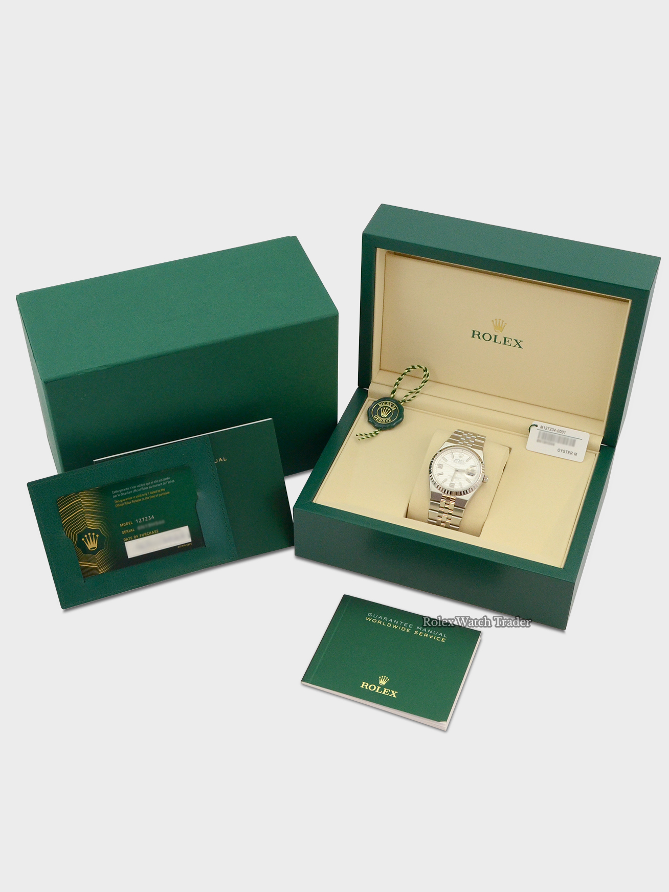 This particular watch is supplied as shown in the detailed images with both of the original inner and outer Rolex boxes, both of the original Rolex swing tags, the two original Rolex booklets, the original Rolex warranty card holder and the original Rolex warranty card dated January 2026 when first supplied new by the UK based authorised dealer.