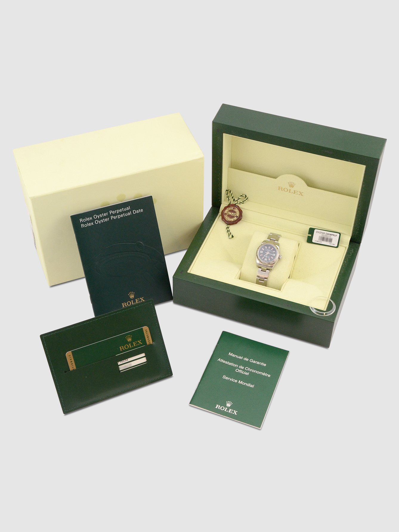 Supplied as shown in the detailed images with both of the original inner and outer Rolex boxes, the two original Rolex swing tags, the two original Rolex manuals, the original Rolex warranty card holder and the original Rolex warranty card dated December 2013 when the watch was first purchased new.