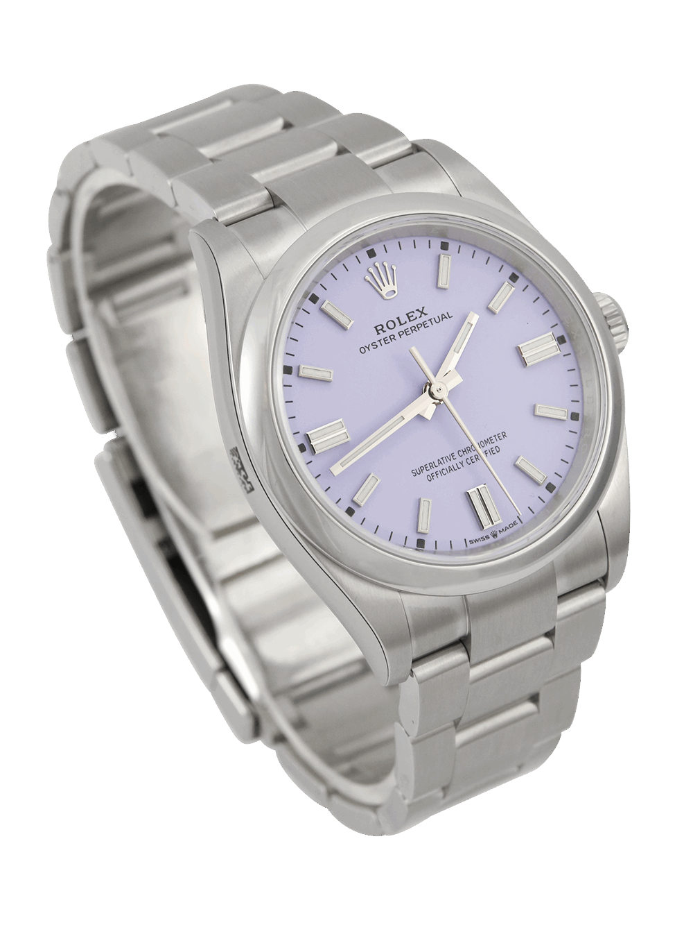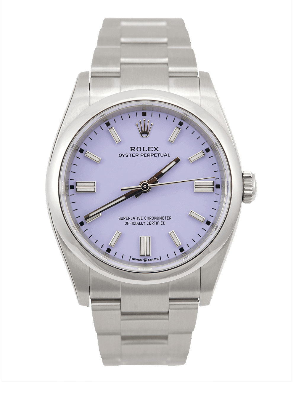 We are delighted to offer one of the latest release from the 2025 Rolex line up. A very desirable Rolex Oyster Perpetual 36 with the lavender dial.