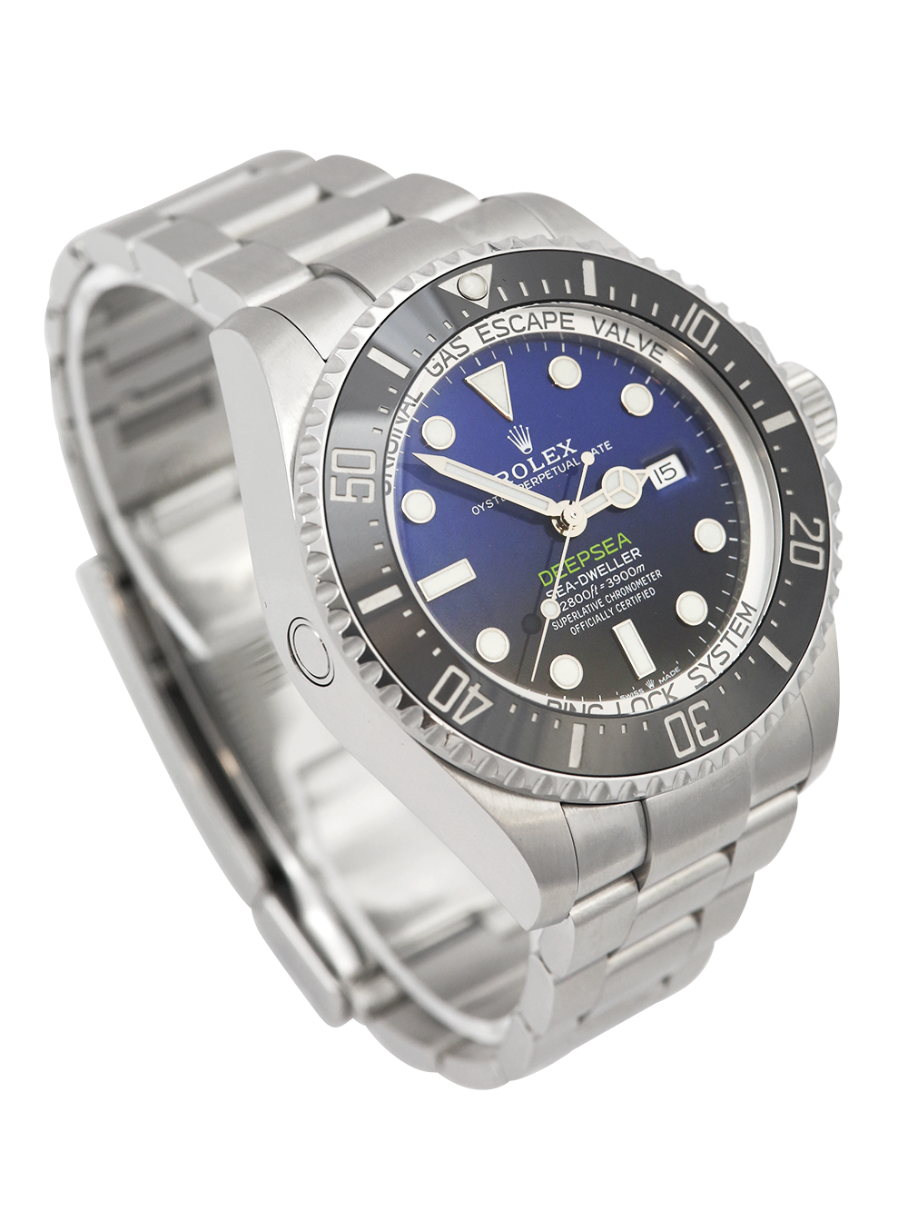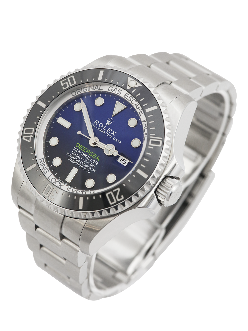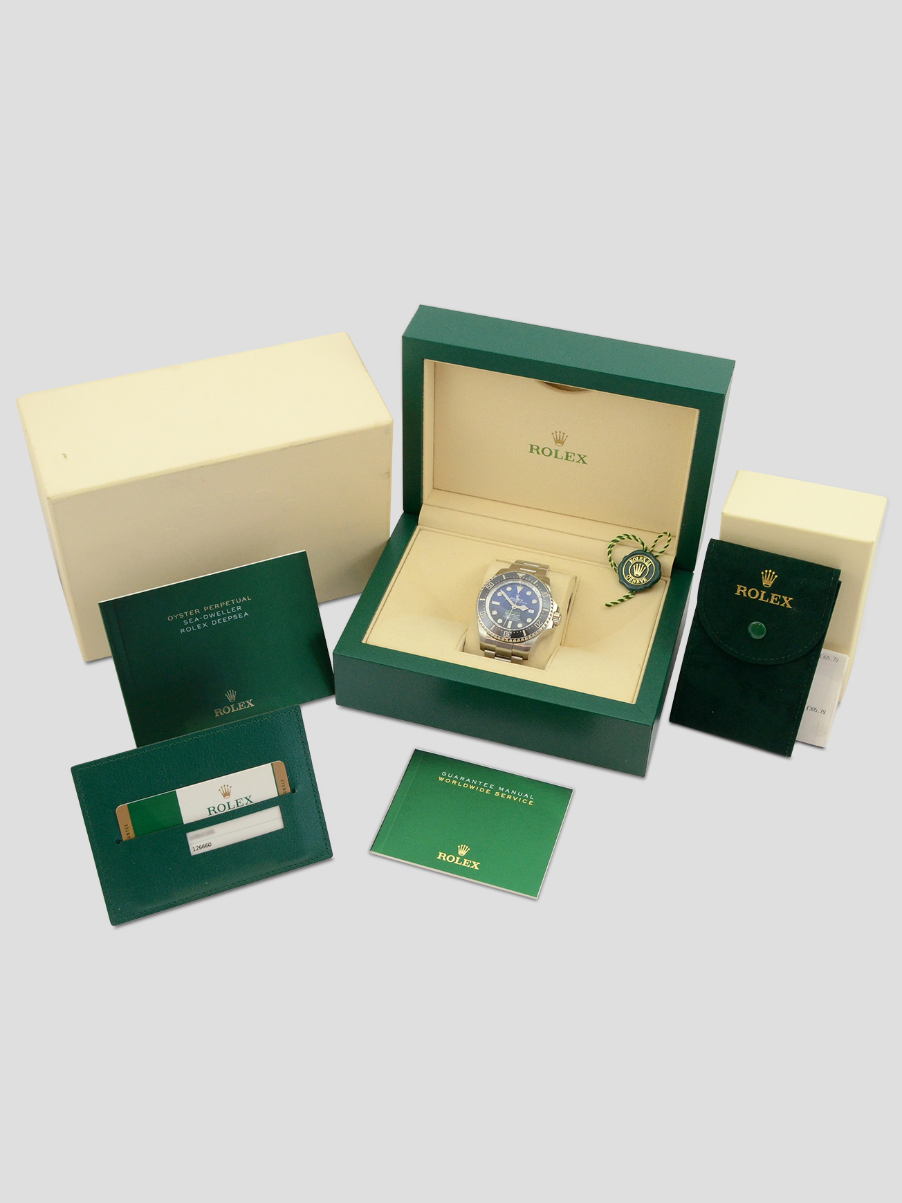 A preowned in pristine condition chronometer rated automatic movement Rolex Sea-Dweller Deepsea model reference 126660. Featuring an impressive 44mm stainless steel case, housing a stunning dial where the blue and black colours fade into one with a date aperture at 3 o’clock and the special 5.5mm thick domed sapphire crystal. The dial is surrounded by a black 60 minute uni-directional rotating black ceramic bezel. Powered by Rolex calibre 3235. Supplied on a full retail length stainless steel Rolex Oyster bracelet featuring the glide-lock clasp and a diver extension link.