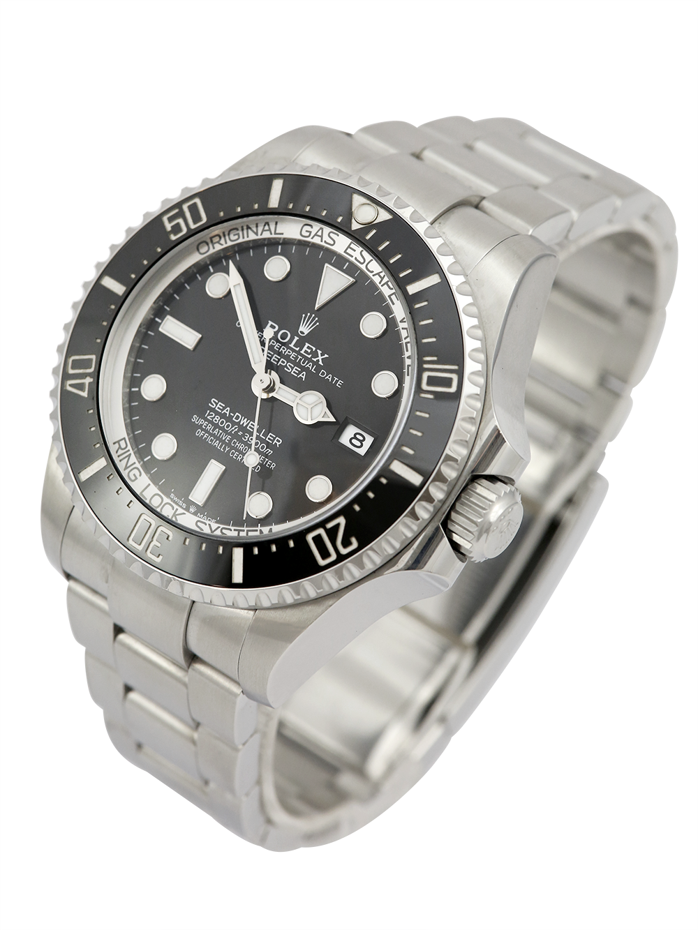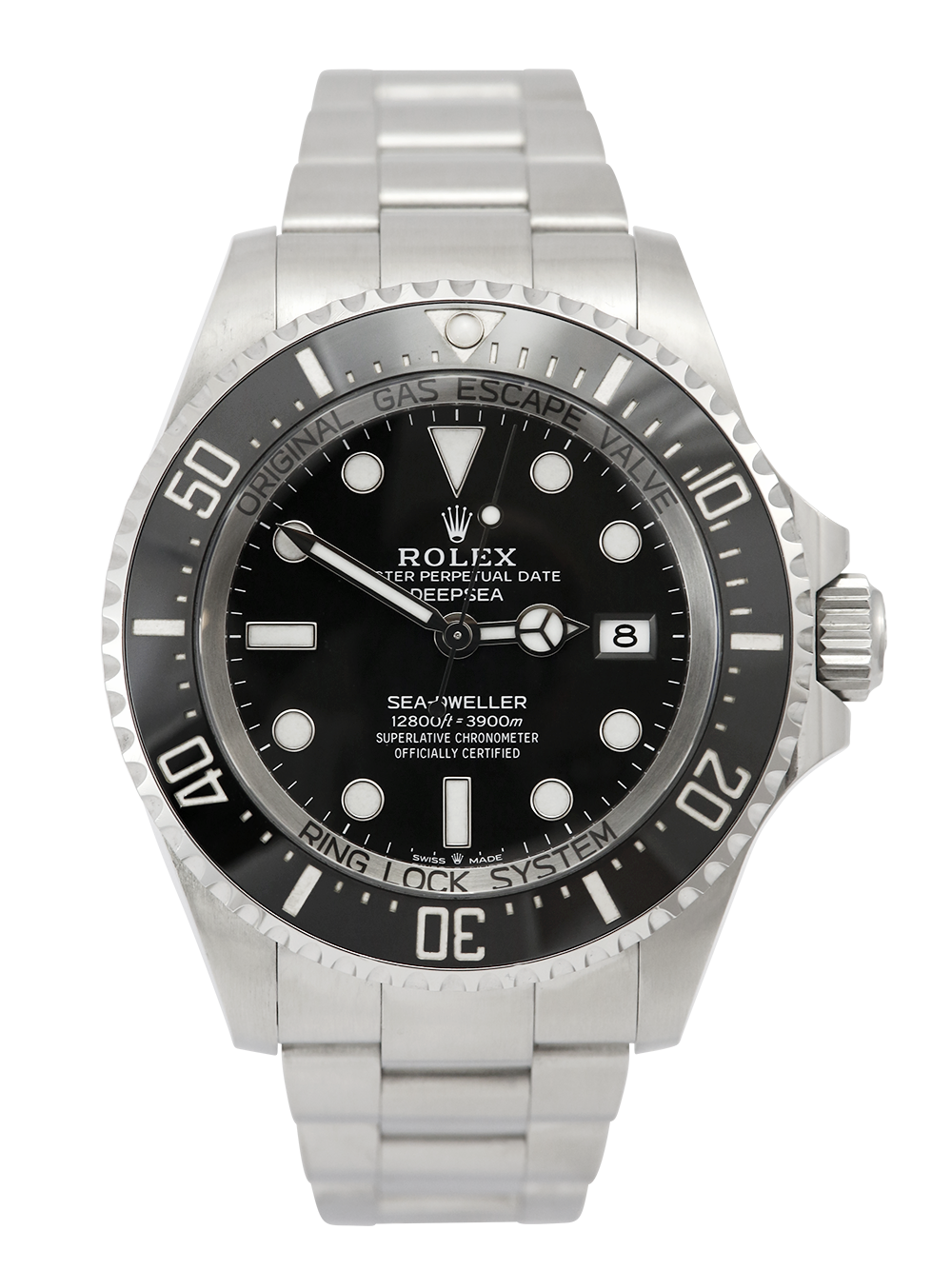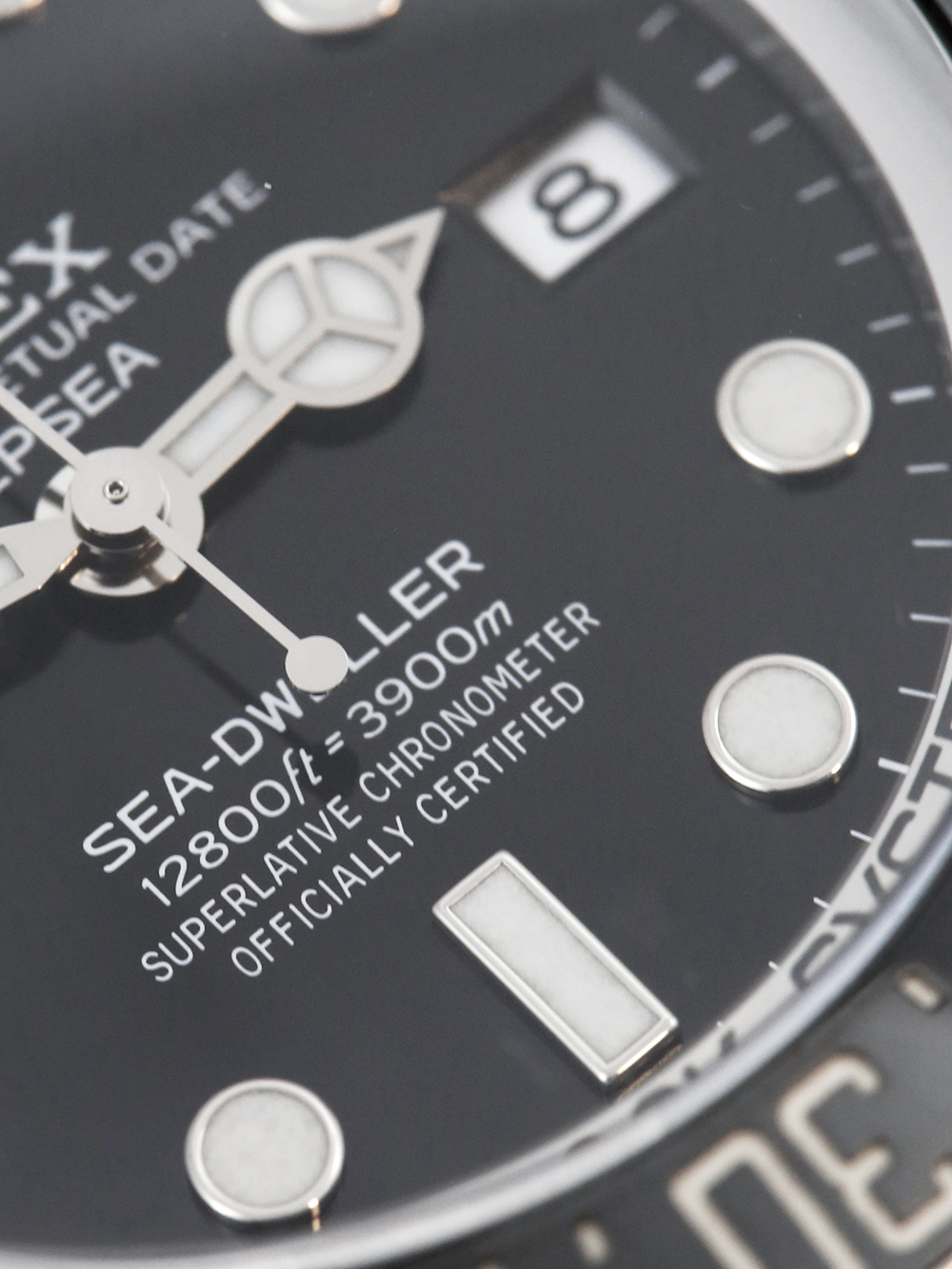 A stainless steel, chronometer certified, automatic movement Rolex Deepsea Sea-Dweller model reference 136660. Featuring a black dial which houses a date aperture at 3 o’clock and luminous hour markers. The dial is surrounded by a 60 minute uni-directional black ceramic bezel. This watch comes on a stainless steel Rolex Oyster bracelet with the glidelock Oysterlock secure folding clasp.