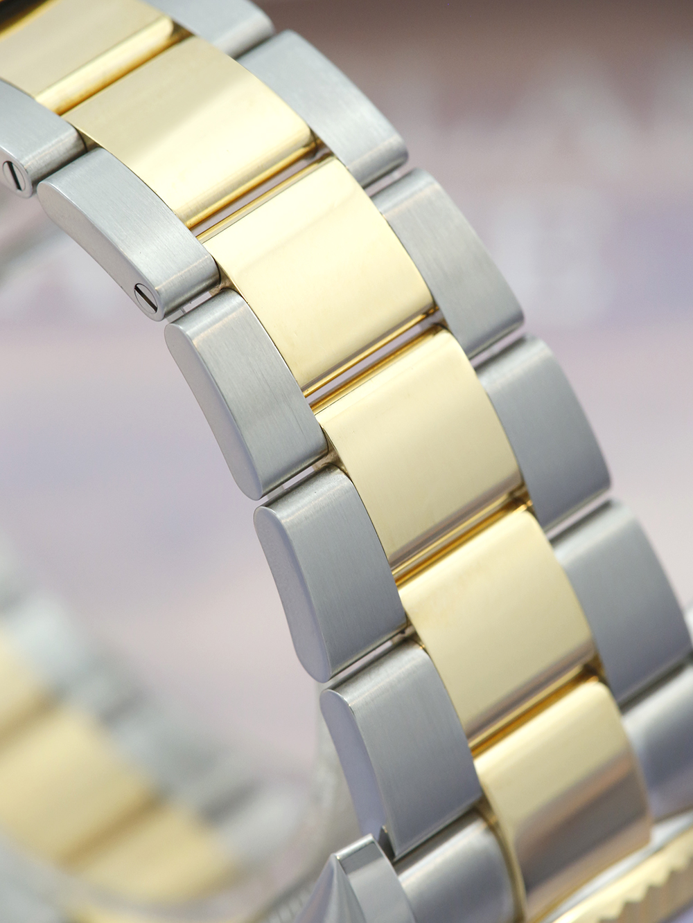 This watch has just been returned to us from the Rolex service centre having had a new crystal glass fitted along with a very light and sympathetic polish to the case and bracelet. There fore presented in as close to brand new as possible.