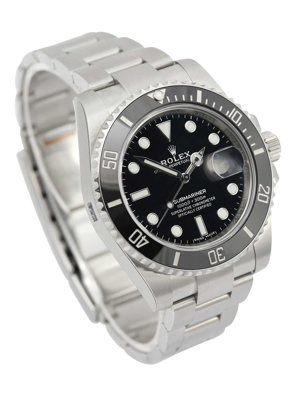 We are delighted to offer for sale this unworn superlative chronometer certified, automatic movement Rolex Submariner Date model reference 116610LN. Featuring a 40mm stainless steel case, housing a black baton ‘maxi’ dial with luminous hour markers and a date aperture at 3 o’clock with an external cyclops. The dial is surrounded by a stainless steel uni-directional rotating bezel with a 60-minute black ceramic bezel insert. Presented on a full retail length stainless steel Rolex Oyster bracelet with an Oysterlock folding clasp.