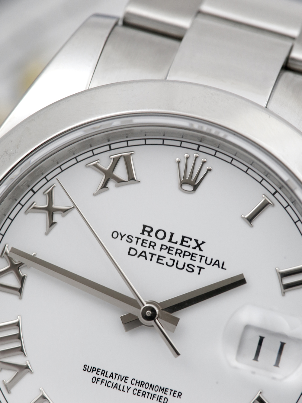 A preowned in pristine condition which is difficult to differentiate between preowned versus unworn new, chronometer certified, automatic movement Rolex Datejust 41 model reference 126300. Featuring a 41mm stainless steel case, housing white Roman numeral dial, a date aperture at 3 o’clock, and an external cyclops. The dial is surrounded by a stainless steel polished finish domed bezel. Presented on a full retail length stainless steel Rolex Oyster bracelet fitted with an Oysterclasp.