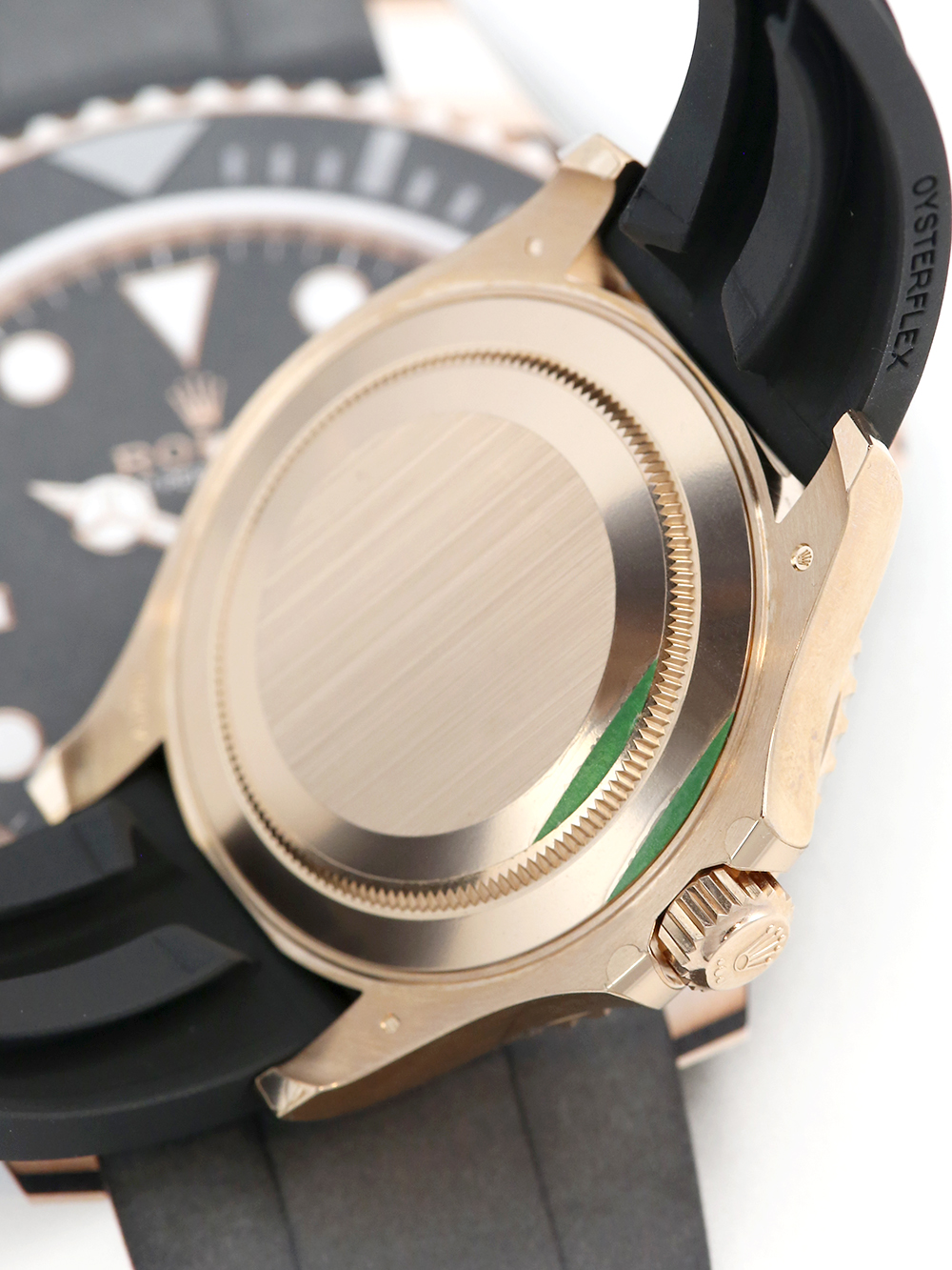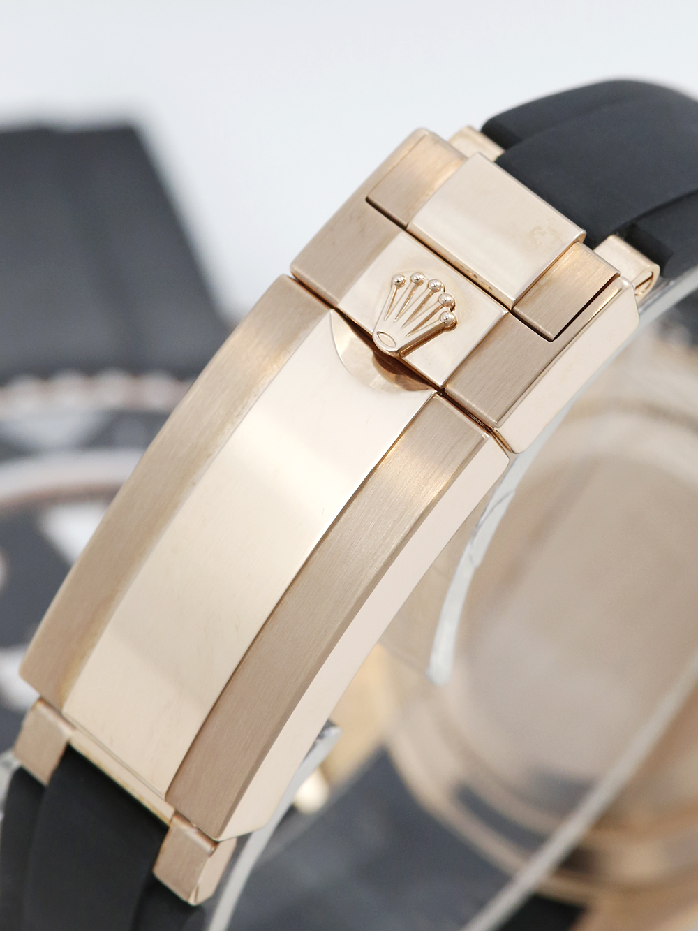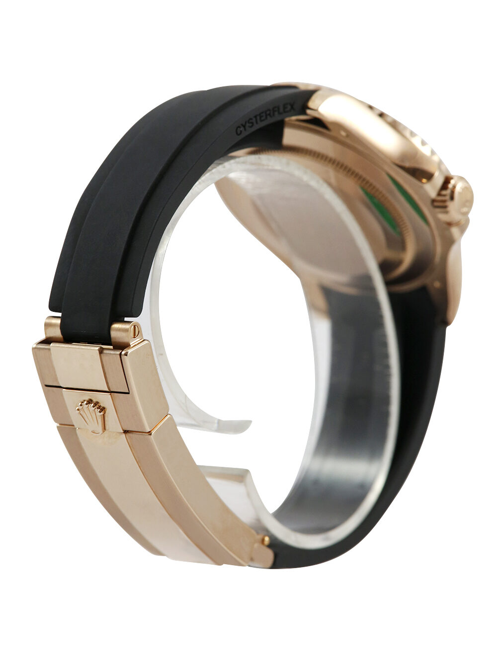 An unworn with some factory stickers still intact and untampered 40mm case size everose gold superlative chronometer, calibre 3235, automatic movement Rolex Yacht-Master 40 model reference 126655 featuring a black baton dial housing a date aperture at 3 O’clock with an external cyclops surrounded by a black ceramic 60-minute bezel presented on a black Rolex Oysterflex size F & E deployment strap with a glide lock everose gold clasp.